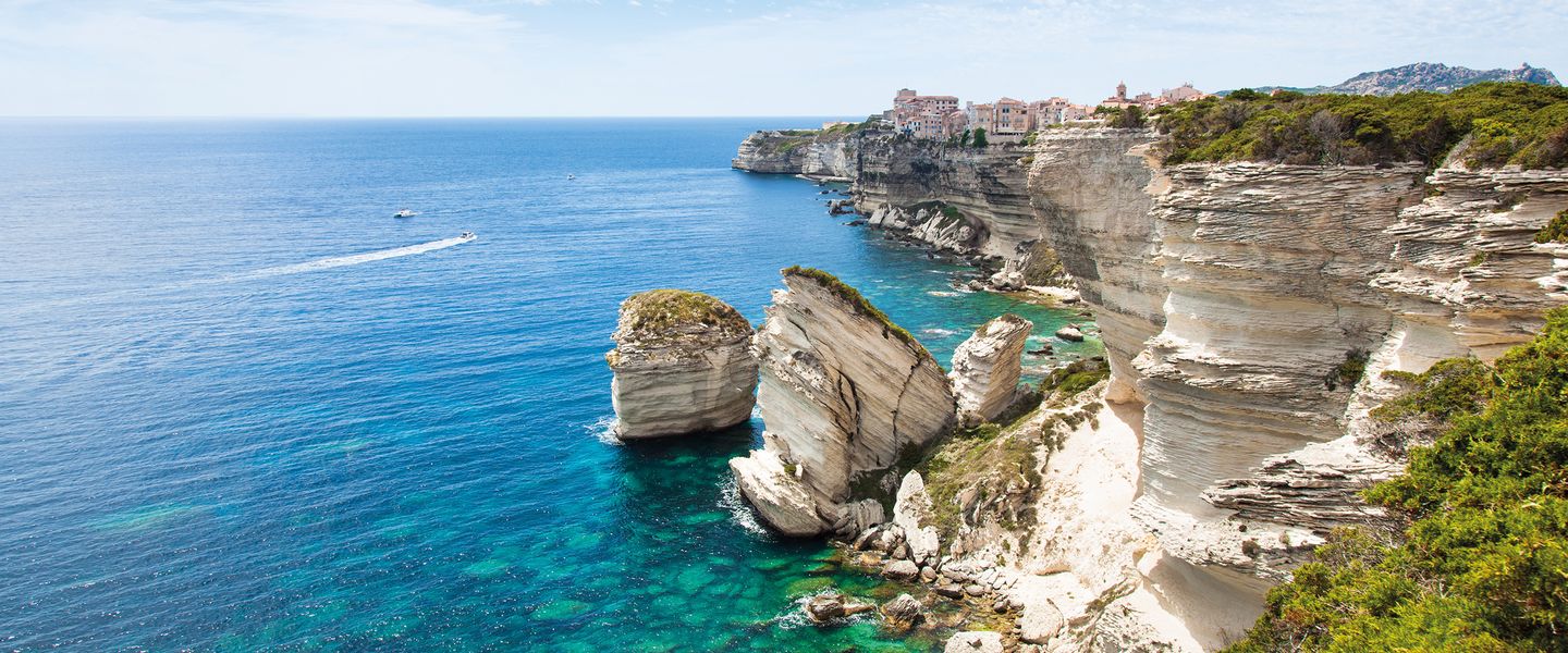 Der Tag beginnt mit einer Stadtbesichtigung in Ajaccio. Am Nachmittag fahren Sie zur südlichen Spitze der Insel, zur Felsenstadt Bonifacio. Hier erwartet Sie ein atemberaubender Anblick: Die Festung thront majestätisch auf dem über das Meer hinausragenden Kreideriff.