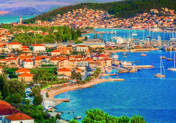 Trogir ist eine historische Stadt an der Adriaküste in Kroatien, die sich in der Region Split-Dalmatien befindet. Die Stadt liegt auf einer kleinen Insel, die durch Brücken mit dem Festland und der benachbarten Insel Čiovo verbunden ist. Trogir ist berühmt für ihre gut erhaltene Altstadt, die zum UNESCO-Weltkulturerbe gehört, und für ihre beeindruckende Architektur, die von der römischen bis zur Renaissancezeit reicht. Die Stadt hat eine reiche Geschichte, die bis in die Antike zurückreicht, als sie von den Griechen gegründet wurde. Heute zieht Trogir Touristen an, die die historische Atmosphäre, die kulturellen Sehenswürdigkeiten und die malerische Küstenlandschaft genießen möchten.