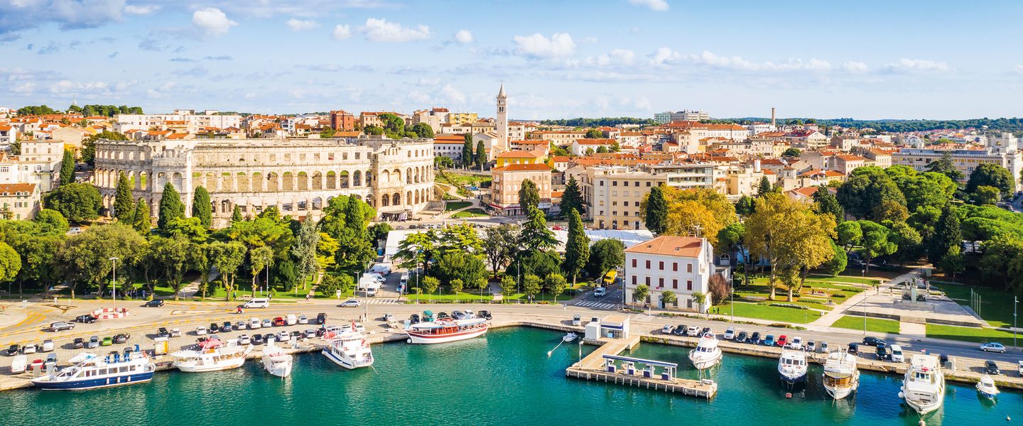 Ausstattung: Im 550 m² großen Wellness- & Spa-Bereich erwarten Sie ein Salzwasser-Innenpool, ein türkisches Bad, eine finnische Sauna, ein Eisbad und ein Ruhebereich mit beheizten Liegen. Darüber hinaus erwarten Sie ein komplett ausgestatteter Fitnessraum sowie ein Friseur- und Schönheitssalon mit 4 Anwendungsräumen. In den verschiedenen Restaurants des Park Plaza Histria genießen Sie Gerichte der traditionellen istrischen und der internationalen Küche. Auf den Terrassen der Cafés des Hotels genießen Sie die Aussicht auf die Adria. Pula ist für sein Amphitheater, eine der 6 größten weltweit noch erhaltenen römischen Arenen, bekannt.