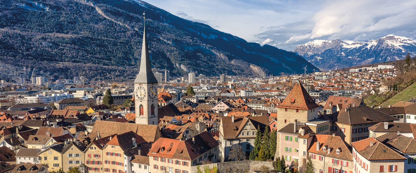 Chur ist die älteste Stadt der Schweiz und liegt im Kanton Graubünden. Sie befindet sich in der Region Graubünden, umgeben von beeindruckenden Alpenlandschaften und malerischen Tälern. Chur ist bekannt für ihre gut erhaltene Altstadt mit engen Gassen, historischen Gebäuden und einer Vielzahl von kulturellen Veranstaltungen. Die Stadt hat eine lange Geschichte, die bis in die Bronzezeit zurückreicht, und war im Mittelalter ein wichtiges Zentrum für Handel und Kultur. Heute ist Chur ein beliebtes Ziel für Touristen, die die alpine Umgebung und die reiche Geschichte der Stadt erkunden möchten.